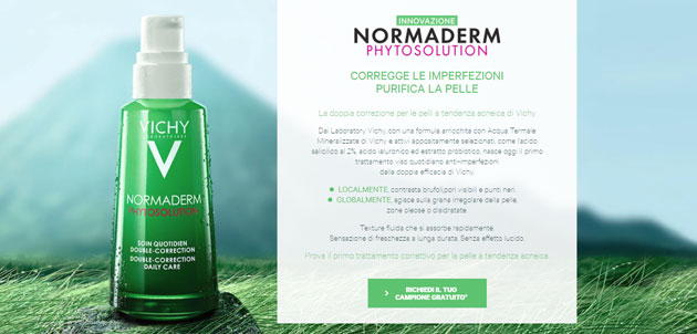 La gamma Normaderm contiene creme viso per pelle lucida o con brufoli, punti neri, pori dilatati, gel detergenti per purificare la pelle del viso, maschere esfolianti, stick per brufoli e trattamenti con acido salicilico. Cpn la gamma PHYTOSOLUTION, VICHY ha messo in campo tutta la sua expertise sulla pelle a tendenza acneica per offrire alle donne soluzioni in grado di trattare sia le imperfezioni sia la pelle nel suo complesso. La gamma comprende sia il gel detergente purificante che il trattamento correttivo quotidiano doppia azione.